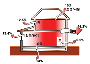 한국건설연구원의 연구결과에 의하면, 주택의 에너지절감을 위한 가장 효율적인 방법은 벽체와